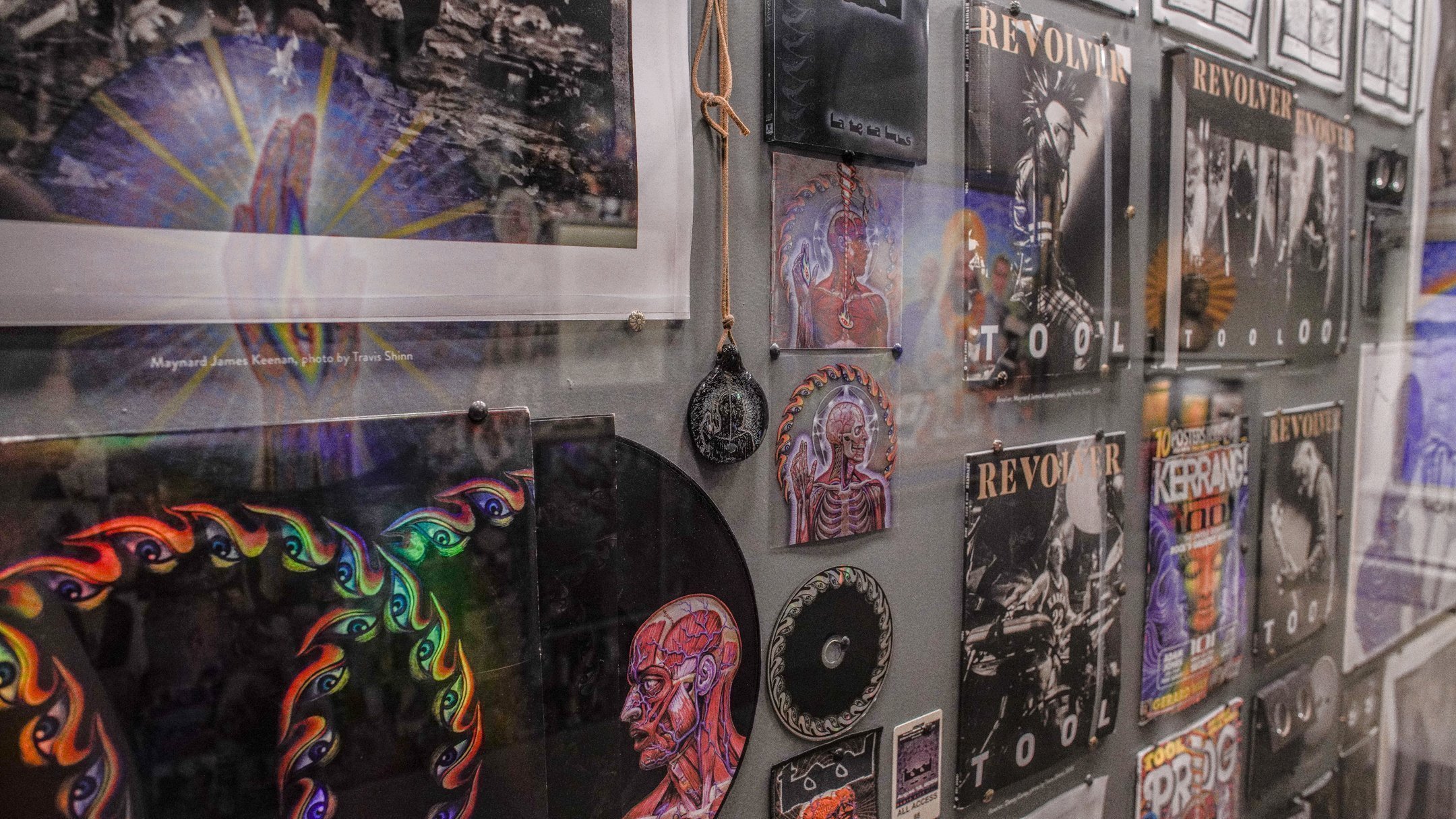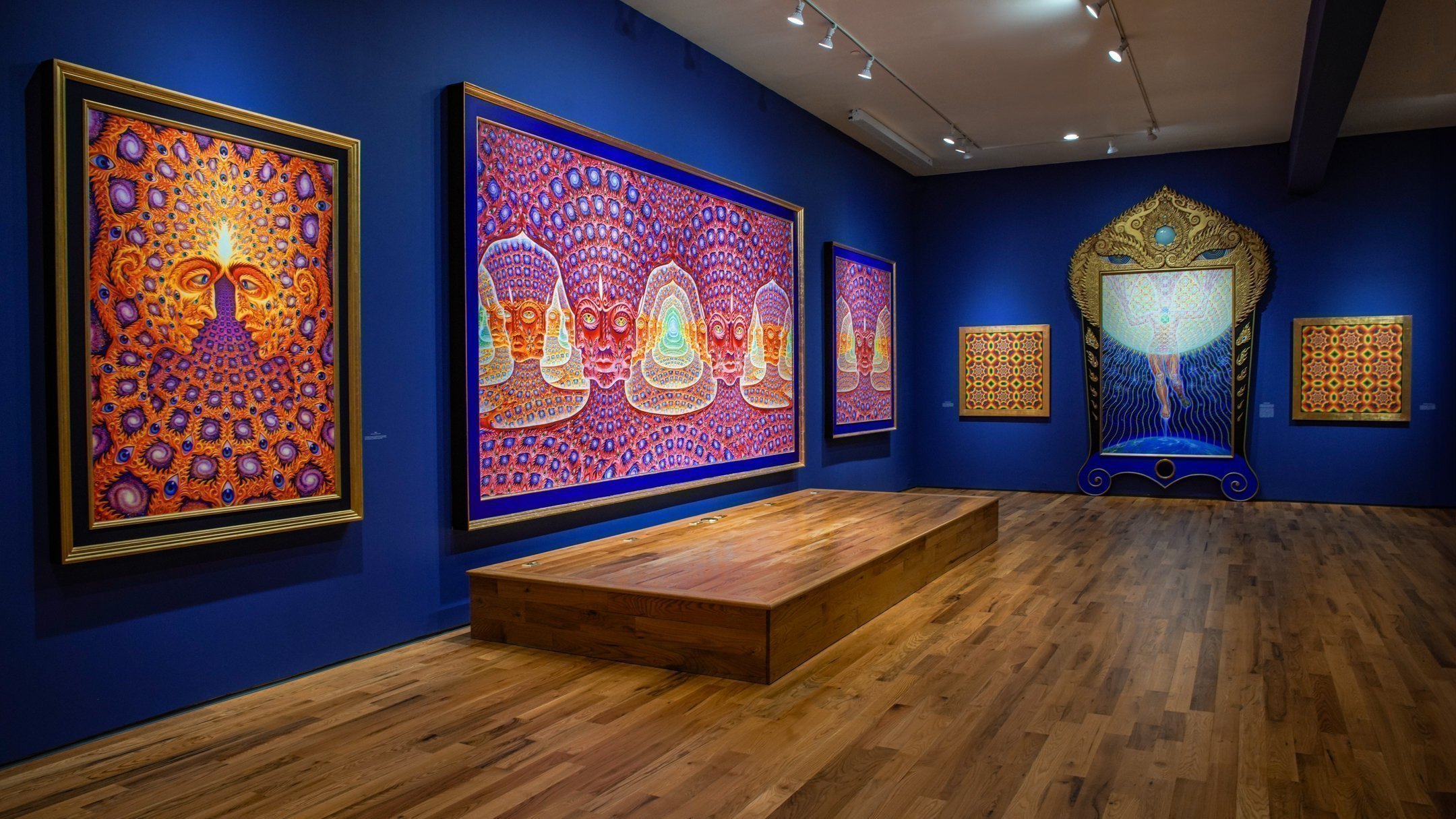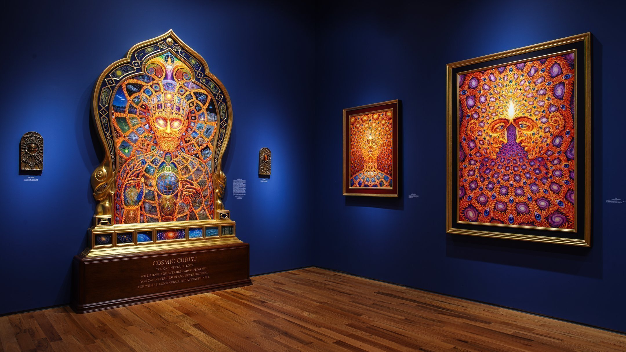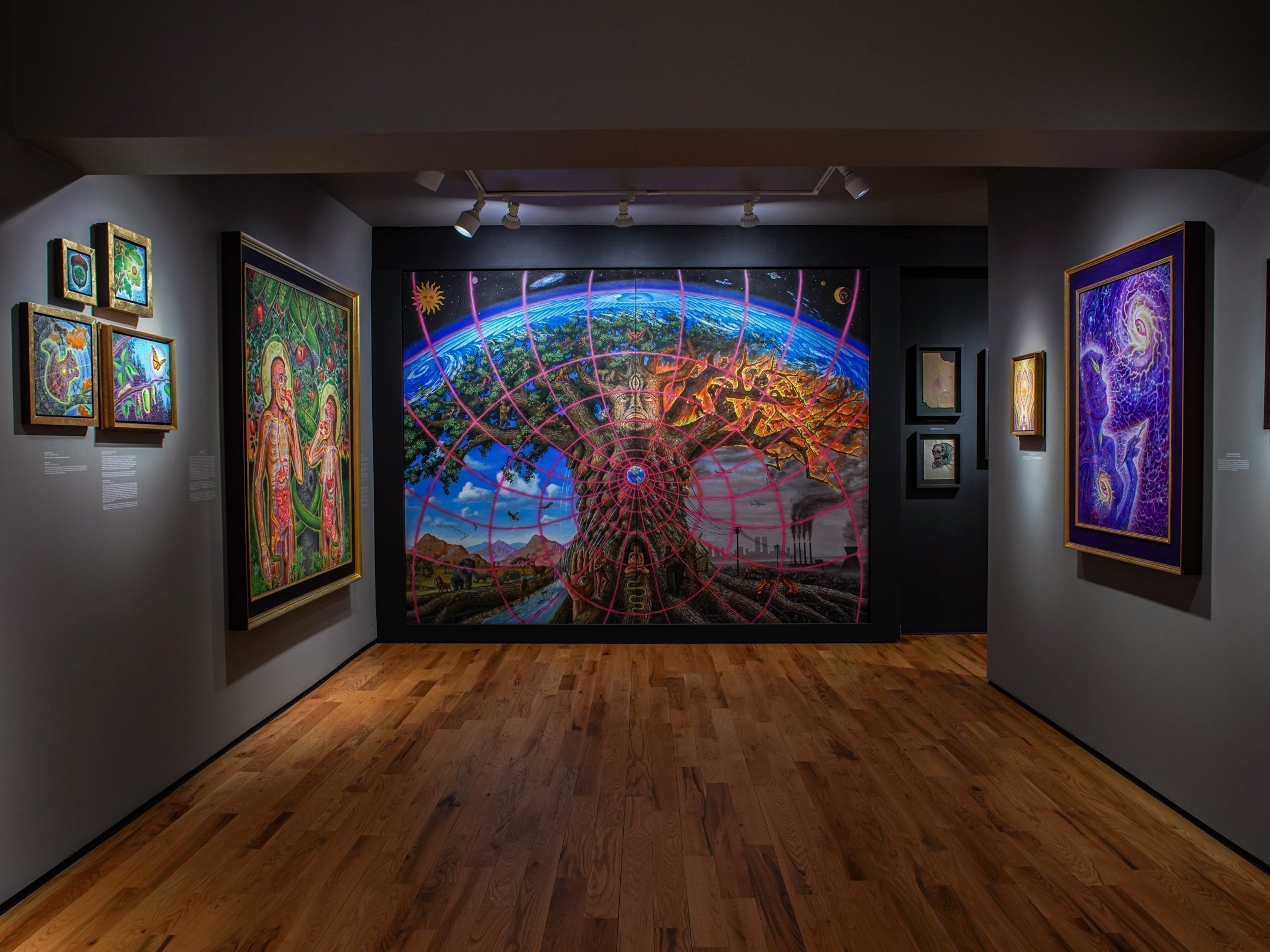 The Psychedelic Reliquary hosts treasured artifacts and ephemera, including the spectacles of Dr. Albert Hofmann and the ashes of Timothy Leary. A shrine inside the Reliquary Room is dedicated to Alex’s artistic collaboration with Grammy Award winning band, Tool.