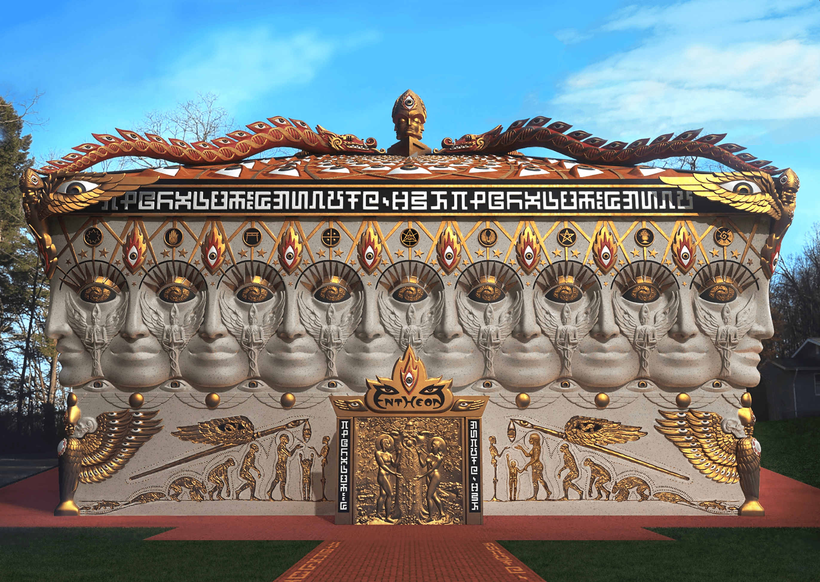 Still in construction is the sculptural “countenance” of Entheon, the thirty faces, the corner angels, roof dragons, evolutionary murals, secret writing… all pointing to the Transcendental Unity of Spirit. The monumental sculptures will be realized with the help of experts in ornamental concrete, utilizing advanced technologies of 3D modeling and fabrication. By sharing the psychedelic and mystical experience through visionary art, an observatory is provided for the beyond within. The Soul is restored by beholding transcendent beauty.